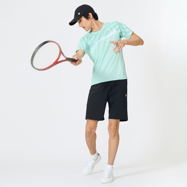 メーカー ルコックスポルティフ 品番 LN6SHT11M-EM00 カラー エメラルド(EM00) サイズ M/L/O 対象性別 メンズ 素材 ドライピンメッシュ(ポリエステル100%) 機能 吸汗/ストレッチ/SUNSCREEN/UPF30/消臭/JTA公認 発売日 2026年2月