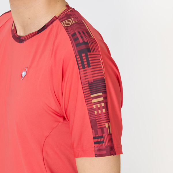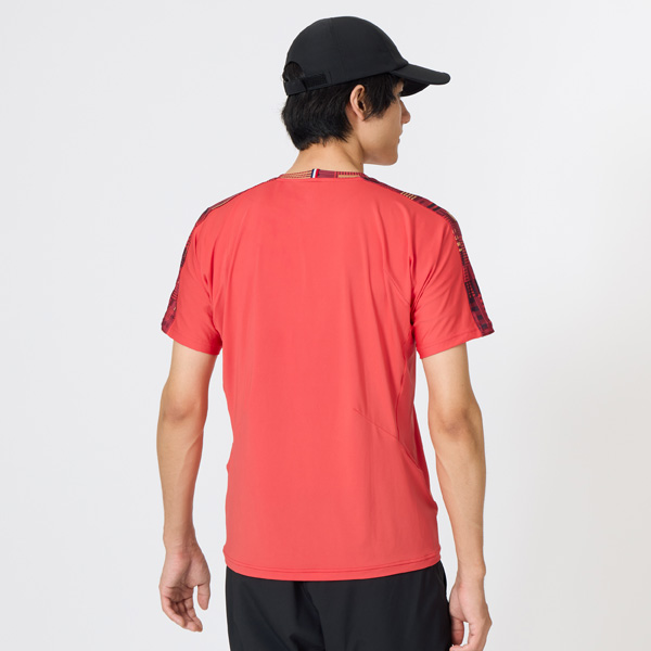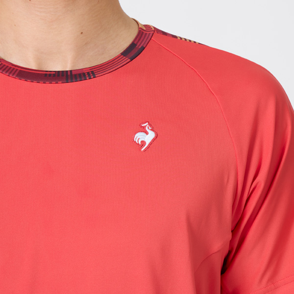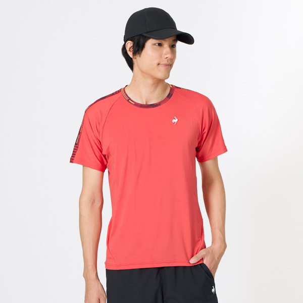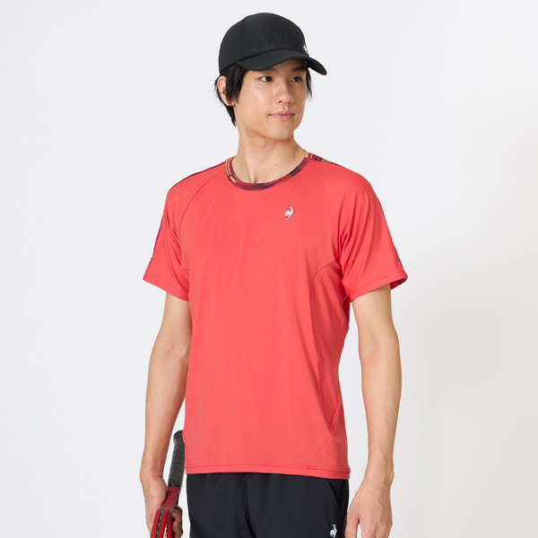 メーカー ルコックスポルティフ 品番 LN6SHT21M-RD00 カラー レッド(RD00) サイズ M/L/O 対象性別 メンズ 素材 ベア天竺(ポリエステル86%,ポリウレタン14%) 機能 吸汗/ストレッチ/UPF50+/消臭/JTA公認 発売日 2026年2月