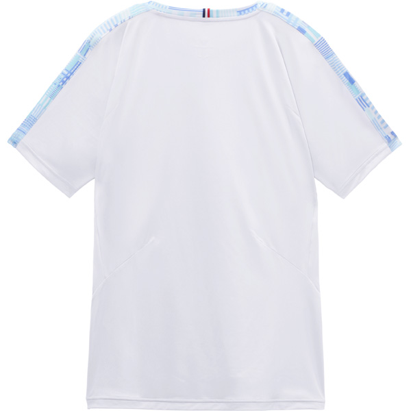 - 特徴・デザインポイント"Aileforme"パターンを特徴としており、ギアとしてのアパレルを目指したアイテム。テニスをされる方の優雅な動きに寄り添うことができるしなやかでコンフォートなテニスウェア。テニスの基本動作である、サーブ・ストローク・ボレーの動きに着目し、DISCで検証し開発したウェア。動作時のストレスをダーツとパターンで解消した"Aileforme"パターンを搭載したゲームシャツ。切替部分にビーチチェアをモチーフにしたデザインを採用。4大臭(アンモニア、酢酸、イソ吉草酸、ノネナール)を全て70%以上カット出来る消臭テープを付与することで、匂いを気にせず着用可能に。JTA(日本テニス協会)の定めるウェア規定を満たしたテニスウェア。素材着心地柔らかく、ストレッチ性に優れたベア天竺素材を採用することでテニスの動きをスムーズにシルエットレギュラー