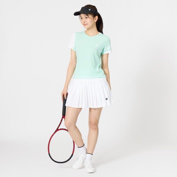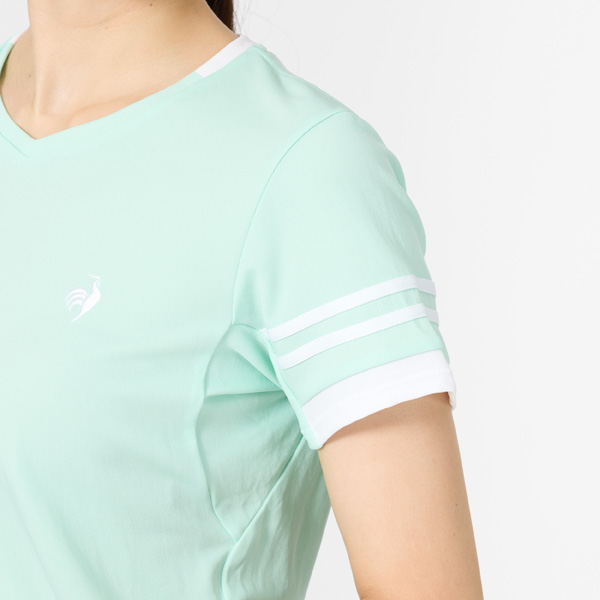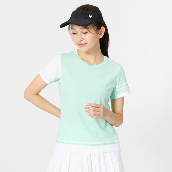 メーカー ルコックスポルティフ 品番 LN6SHT31L-EM00 カラー エメラルド(EM00) サイズ S/M/L/O 対象性別 レディース 素材 本体:接触冷感ポリエチレン(本体 ポリエステル57%,ポリエチレン43%)/胸・袖テープ部:(ポリエステル100%) 機能 接触冷感/UPF30/消臭/JTA公認 発売日 2026年3月