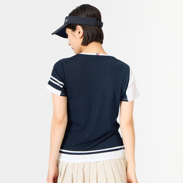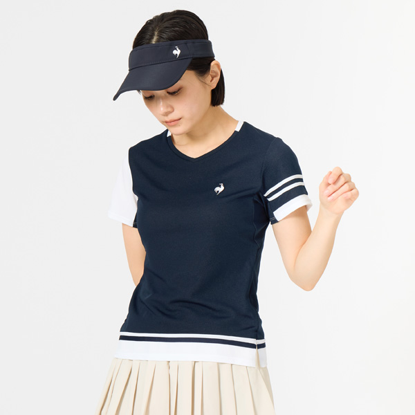 メーカー ルコックスポルティフ 品番 LN6SHT31L-NV00 カラー ネイビー(NV00) サイズ S/M/L/O 対象性別 レディース 素材 本体:接触冷感ポリエチレン(本体 ポリエステル57%,ポリエチレン43%)/胸・袖テープ部:(ポリエステル100%) 機能 接触冷感/UPF30/消臭/JTA公認 発売日 2026年3月