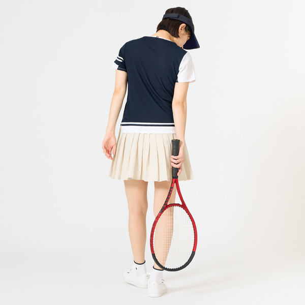 - 特徴・デザインポイント暑い季節にも心地よいルコックスポルティフ至上一番冷たい接触冷感素材を採用したゲームシャツ。ナイロンよりも熱伝導率が高く、冷たく感じるポリエチレン混素材を肌面に採用。4大臭(アンモニア、酢酸、イソ吉草酸、ノネナール)を全て70%以上カット出来る消臭テープを付与することで、匂いを気にせず着用可能に。JTA(日本テニス協会)の定めるウェア規定を満たしたテニスウェア。素材着心地触れるとひんやり冷たい接触冷感素材。ナイロンよりも熱伝導率が高く、冷たく感じるポリエチレン混素材を肌面に採用。シルエットレギュラー