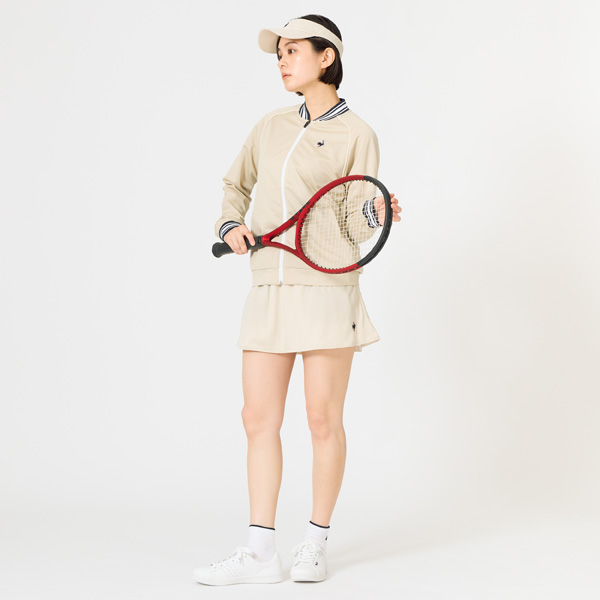 メーカー ルコックスポルティフ 品番 LN6SJK10L-BG00 カラー ベージュ(BG00) サイズ S/M/L/O 対象性別 レディース 素材 デニムライクニット(ポリエステル100%) 機能 吸汗/ストレッチ/UPF15 発売日 2026年2月