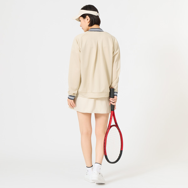 - 特徴・デザインポイントデニムライクでどのウェアにも合わせやすい素材を採用したフルジップジャケット。衿、袖口部分にはラインをテープを採用しおしゃれな着こなしが可能に。デニムライクな見え方からどんなシャツ、パンツにも合わせやすく、一枚持っていると便利。JTA(日本テニス協会)の定めるウェア規定を満たしたテニスウェア。素材着心地どのウェアとも合わせやすいデニムライクなニットを採用し、幅広いシーンで活躍する1着。シルエットレギュラー