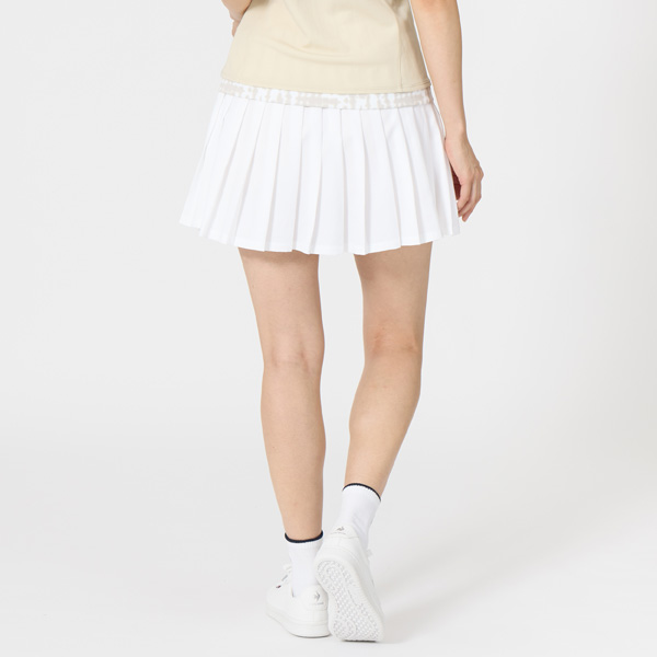 - 特徴・デザインポイント細やかできれいなプリーツ加工を施したスコート。様々なトップスに合わせやすいデザインに仕上がっている。JTA(日本テニス協会)の定めるウェア規定を満たしたテニスウェア素材着心地ふわっとして軽さが特徴のウーブン素材を採用シルエットレギュラー