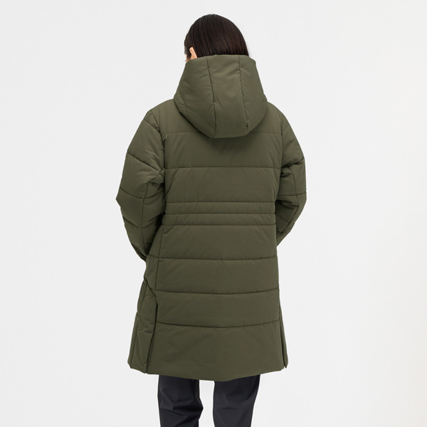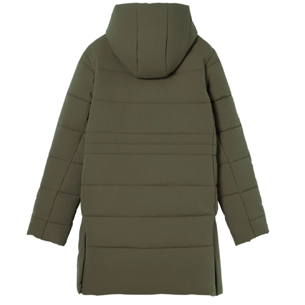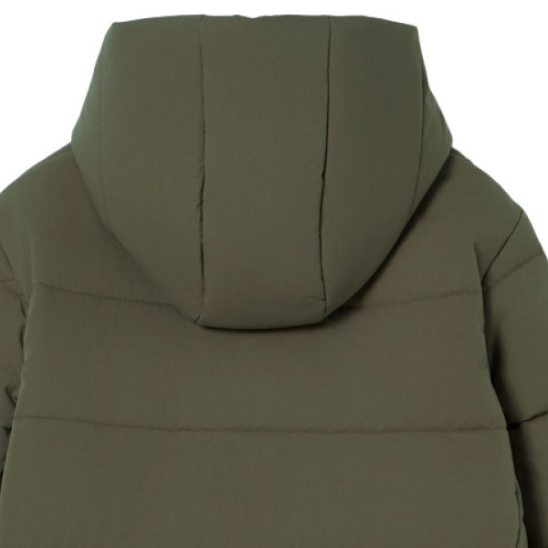 - シンプルなデザインの中綿コート。裾のサイド部分には足回りが動かしやすくなるようスリットを入れており、ボタンで開け閉めすることが可能です。表地には、防風機能とはっ水性に優れた素材を採用。身頃部分には中綿200gと暖かさにも優れている。防風、はっ水、保温。ベーシックなシルエット。