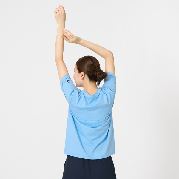 メーカー ルコックスポルティフ 品番 LT6SHT03L-BL00 カラー ブルー(BL00) サイズ S/M/L/O 対象性別 レディース 素材 サンスクリーンスムースニット(ポリエステル100%) 機能 吸汗速乾/ストレッチ/UV CUT(UPF15)/遮熱/Sunscreen NIR/SUNSCREEN 発売日 2026年2月