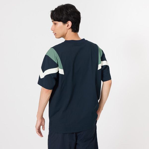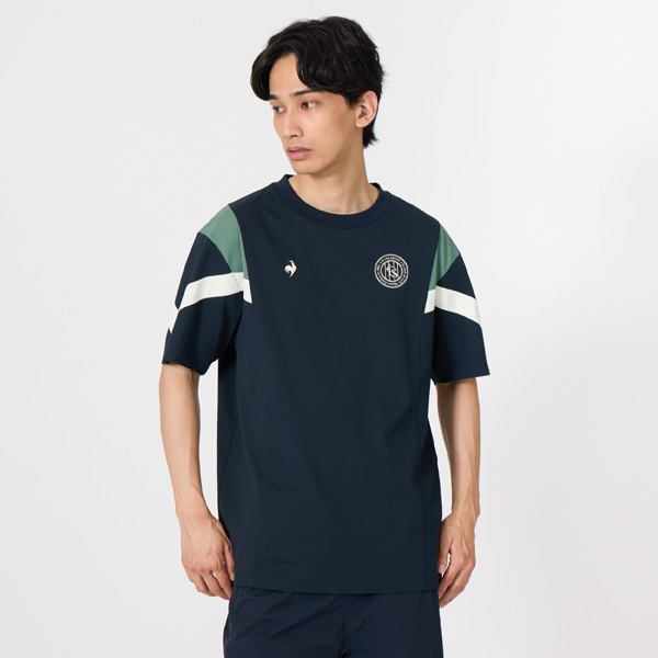 - 上質で高級感のある表面感が特徴の半袖Tシャツ。両袖の切替デザインが特徴的。1882年フランス生まれのスポーツブランド、ルコックスポルティフ。140年以上の歴史の中で、昔も今もスポーツを共に楽しむ人々が集まるクラブチームをテーマとした、“leclubdeLCS”シリーズ。ブランドの象徴的なスポーツの一つである(フットボール)からインスパイアされたデザインコレクション。独特のもちっと柔らかい風合いが特徴の開発素材”ヘランカ”を採用したシリーズ。かさ高性とストレッチ性に優れ、空気を纏うような感覚を与えるシャツ素材。スポーツシーンはもちろんデイリーユースにも着用できる快適な素材感。日傘のように太陽の光をブロックするサンスクリーンを採用し、ジリジリした“熱さ”の原因である近赤外線をカット。着るだけでウェア内の温度上昇を抑え機能を発揮。その効果は、-3℃差※。※カケン法に基づく遮熱性試験におけるデサント社従来品とサンスクリーンの温度差。実着用では環境によって数値は異なる。ややゆったりとしたシルエット。
