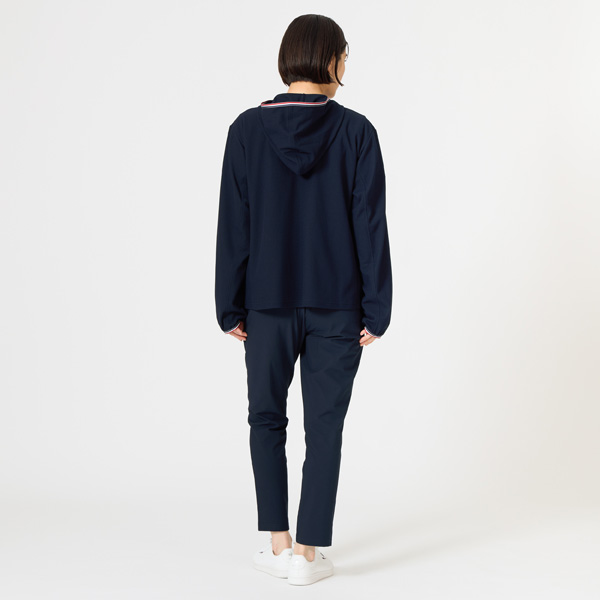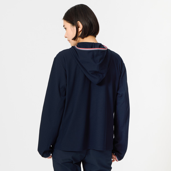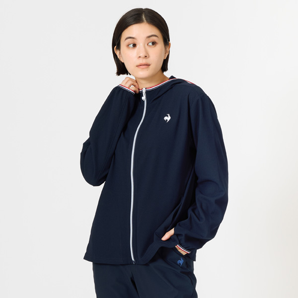 メーカー ルコックスポルティフ 品番 LT6SSW20L-NV00 カラー ネイビー(NV00) サイズ S/M/L/O 対象性別 レディース 素材 ヘランカダイヤニット(本体 ポリエステル100%)/フード口・袖口:(ポリエステル80%,ポリウレタン20%) 機能 吸汗速乾/ストレッチ/UV CUT(UPF50+)/遮熱/Sunscreen NIR/SUNSCREEN 発売日 2026年3月