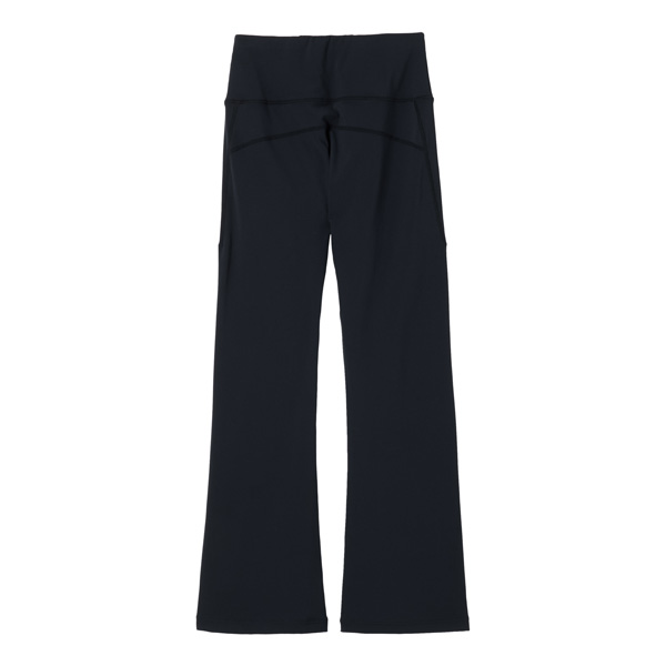 - 特徴・デザインポイント/左腰あたりに配置した、上品さと高級感を演出してくれるメタリック調のロゴがデザインポイント。素材のストレッチ性を最大化するルフフォルムパターンとひざから裾にかけて広がるフレアシルエットが特徴。「Body Line Protection」シリーズ。ボディーラインを程よく隠してくれる独自のシルエットを採用。素材 着心地/ピーチスキン加工を施した肌あたりの良いソフトな素材を採用。機能/吸汗、ストレッチ、UPF50+シルエット/ルフフォルムのパターンで、身頃を一枚構造にすることで素材のストレッチ性を最大化。縫い代を限りなく少なくすることで、肌当たりの軽減も実現。ウエストからひざまで体をしっかり包み込み、ひざから裾にかけて広がるフレアシルエット。お尻が隠れる長さのトップスを合わせた、シルエットの綺麗なパンツとしての普段使いもおすすめ。また、ウエストバンドには鍵やカード、携帯電話等の小物を収納できるポケット付き。ヨガやスタジオの行きかえりにもおすすめ。