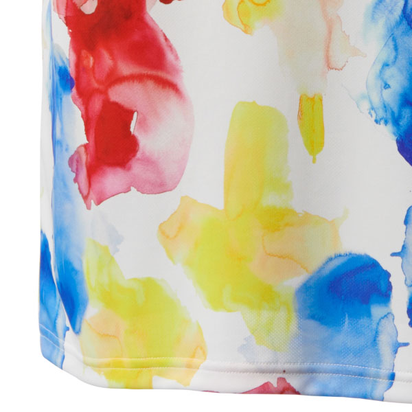 - 水彩画をプリントしたゲームシャツ 全面プリントだが生地の風合いを損なわず柔らかいのが特徴