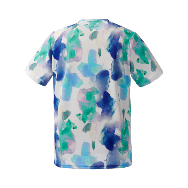 - 水彩画をプリントしたゲームシャツ 全面プリントだが生地の風合いを損なわず柔らかいのが特徴