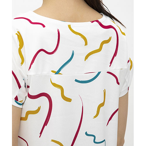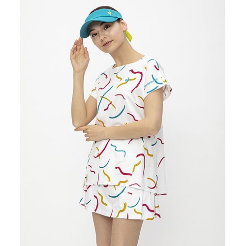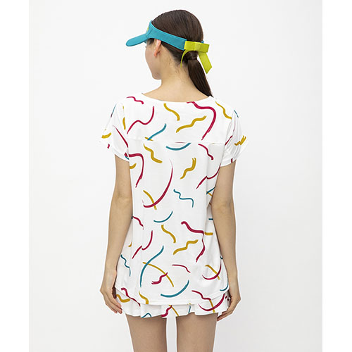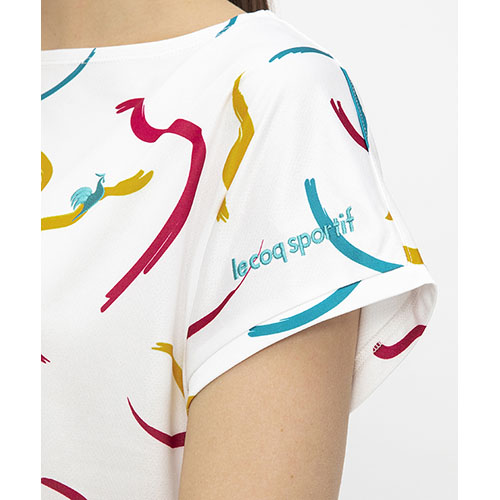 ■素材/日傘のように太陽の光をブロックする、サンスクリーンシリーズです。太陽光の熱を遮ることで、ウェアやウェア内の温度上昇を抑えるクーリング効果があります。■デザイン・機能/今シーズンのテーマである"カラー デュ ラ ジョア"のデザインイメージをグラフィックで表現したゲームシャツです。柔らかな曲線デザイン美はle coq sportifらしいソフトで優しい印象を与えるとともに、躍動感を感じさせます。後ろ裾に緩やかなフレア感を出すことで女性らしい印象に仕上がっております。