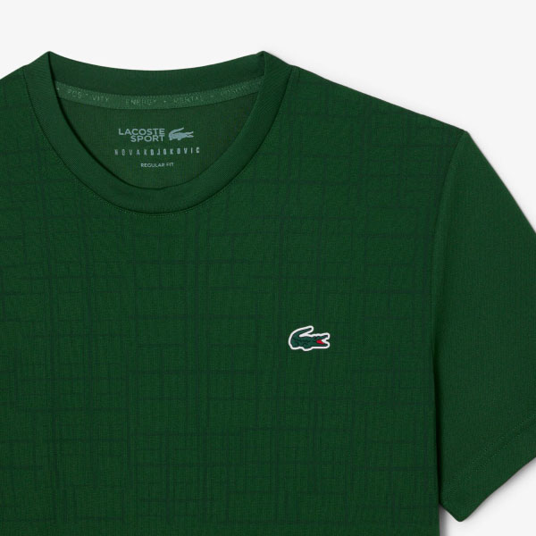 テニスラケットモチーフが際立つジョコビッチコレクションの機能性Tシャツ ・リサイクルポリエステル仕立てのウルトラドライ鹿の子素材 ・テニスラケットをモチーフにしたグラフィックプリントをフロントヨークに配置 ・やや細身のストレートカットによるアクティブなシルエット ・テニスプレイヤー、ノバク・ジョコビッチのシグネチャーデザイン ・胸元にシリコン製のワニロゴ ・フィット感:Regular Fit