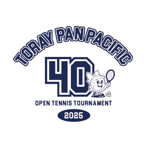 センターには「40」の大きなナンバリングと、東レPPOテニスの公式キャラクターをあしらい、記念グッズならではのインパクトと親しみやすさを両立。