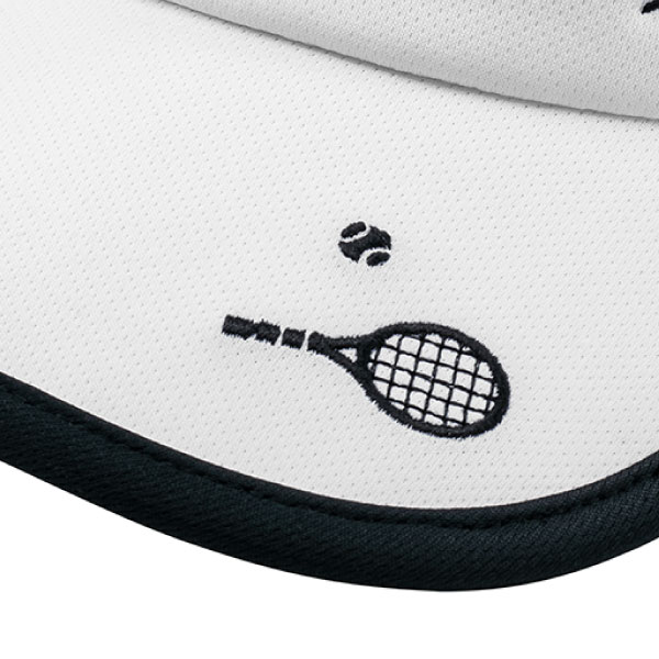 - ラケットの刺繍がアクセントのサンバイザー。再生ポリエステルを使用した、環境に配慮した サステナブル素材を採用。UVカット(UPF50+)仕様。レディスフリー(頭囲 約54~58cm)。