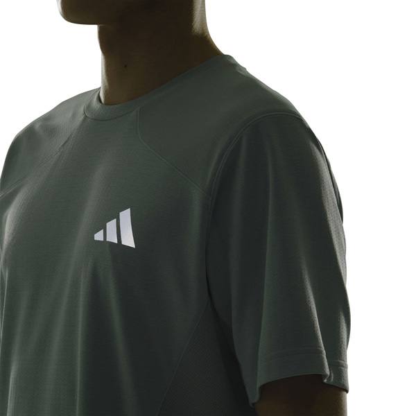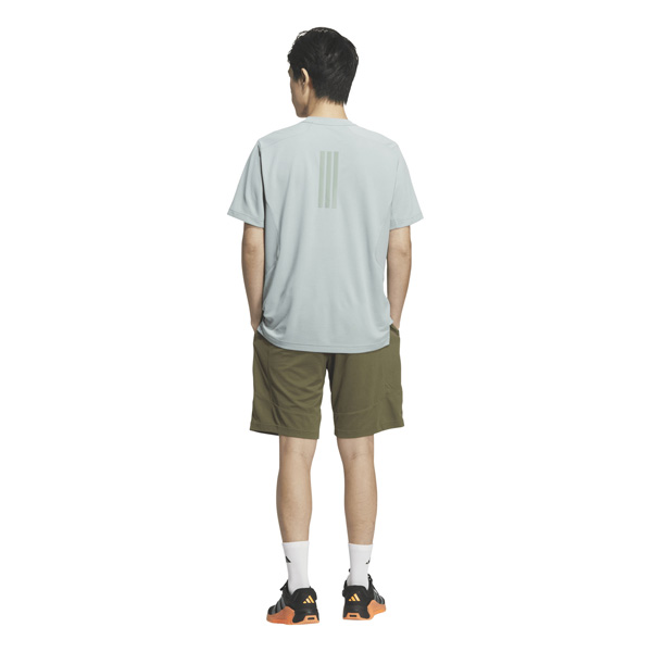 - 新開発の肌離れのいいクールタッチ素材を採用し、屋内外のトレーニングシーンに対応するテックエッセンシャルズレンジの半袖Tシャツ。独特な袖のカットラインにより、トレーニングに必要な肩回りの運動量を確保。肌当たりを軽減するステッチングにより、快適な着用感を実現。脇下のメッシュパネルを1枚にすることで、腕を上げてもストレスの少ない動きを可能にする。両サイドの裾にはスリットが配され、トレーニング時の激しい動きにも対応する。背面中央には3ストライプスリフレクトプリントが配され、夜間の視認性にも優れている。前面左胸の3BARロゴもリフレクトプリント仕様で高級感を演出。