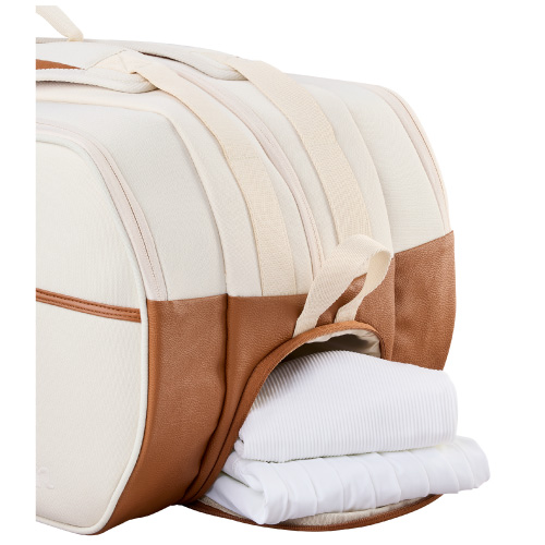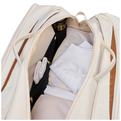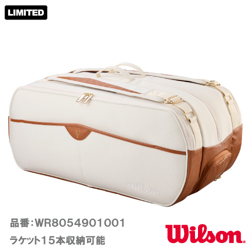 メーカー ウイルソン 品名 RF LAWN COLLECTION TOURNAMENT RACKET BAG 品番 WR8054901001 カラー CREAM サイズ 70 x 32 x 34 cm 素材 ポリエステル/ポリウレタン 機能 ラケット15本収納可能 発売日 2025年9月