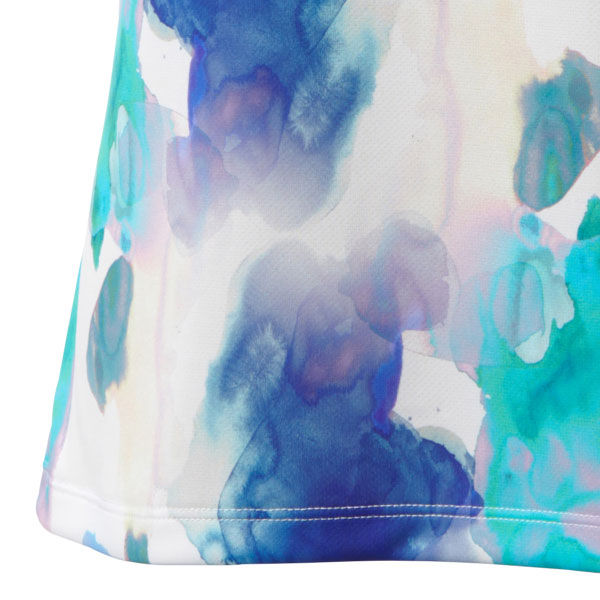 - 水彩画をプリントしたスリーブレスシャツ 全面プリントだが生地の風合いを損なわず柔らかいのが特徴