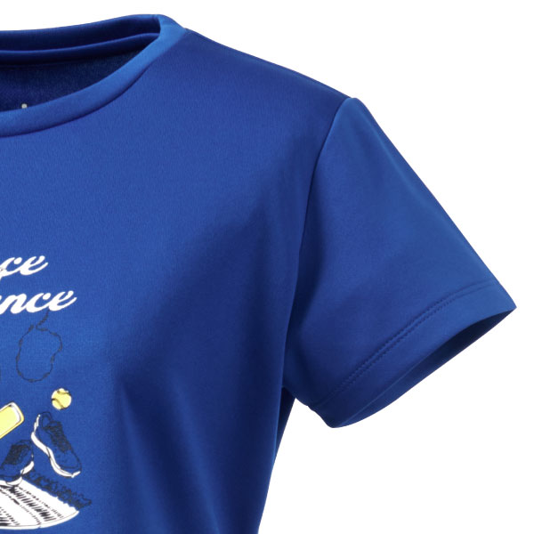 - ビーナスマッシュとカラー連動したイラストTシャツ。ラケットやシューズ、バッグなど、テニスに欠かせないアイテムを柔らかな手描き風のタッチで描き、スポーティーながらも上品な印象に仕上げました。
