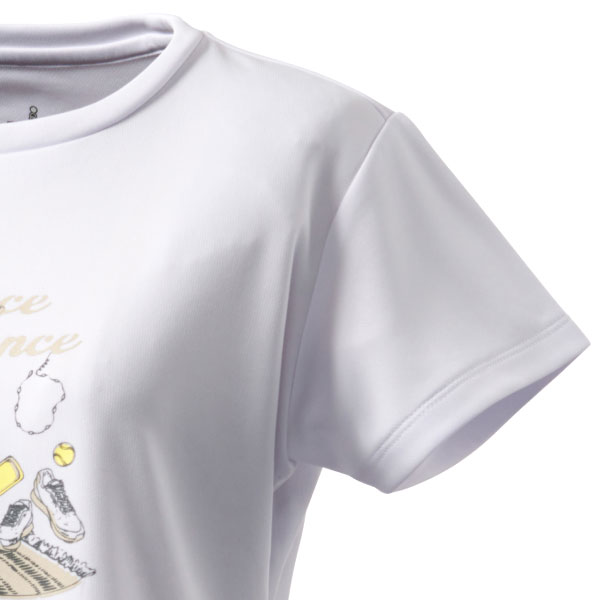 - ビーナスマッシュとカラー連動したイラストTシャツ。ラケットやシューズ、バッグなど、テニスに欠かせないアイテムを柔らかな手描き風のタッチで描き、スポーティーながらも上品な印象に仕上げました。