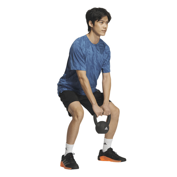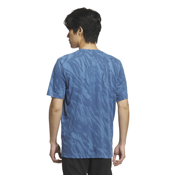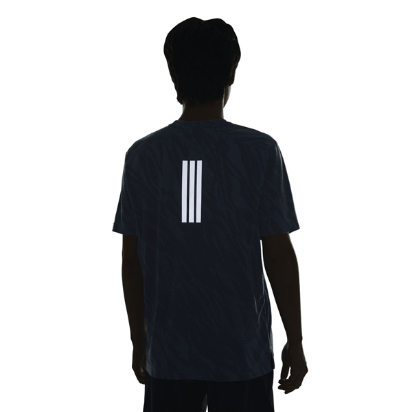 - シーズナルのカモ柄プリントを施したクールタッチ素材を採用し、屋内外のトレーニングシーンに対応するテックエッセンシャルズレンジの半袖Tシャツ。独特な袖のカットラインにより、トレーニングに必要な肩回りの運動量を確保。肌当たりを軽減するステッチングにより、快適な着用感を実現。脇下のパネルを1枚にすることで、腕を上げてもストレスの少ない動きを可能にする。両サイドの裾にはスリットが配され、トレーニング時の激しい動きにも対応する。背面中央には3ストライプスリフレクトプリントが配され、夜間の視認性にも優れている。前面左胸の3BARロゴもリフレクトプリント仕様で高級感を演出。