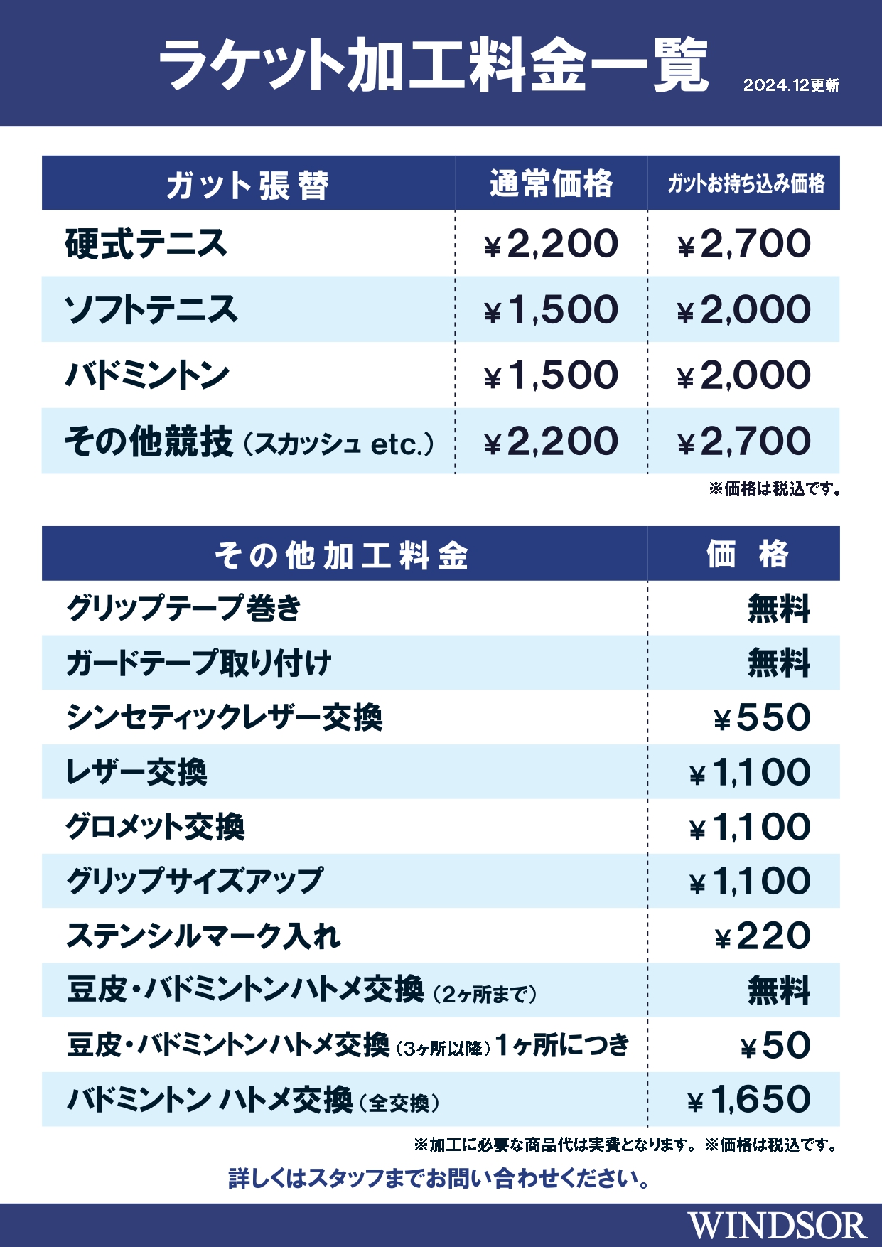 事前にお電話でご希望の張り上がり日と本数、ラケット ガット種類などもお知らせください。