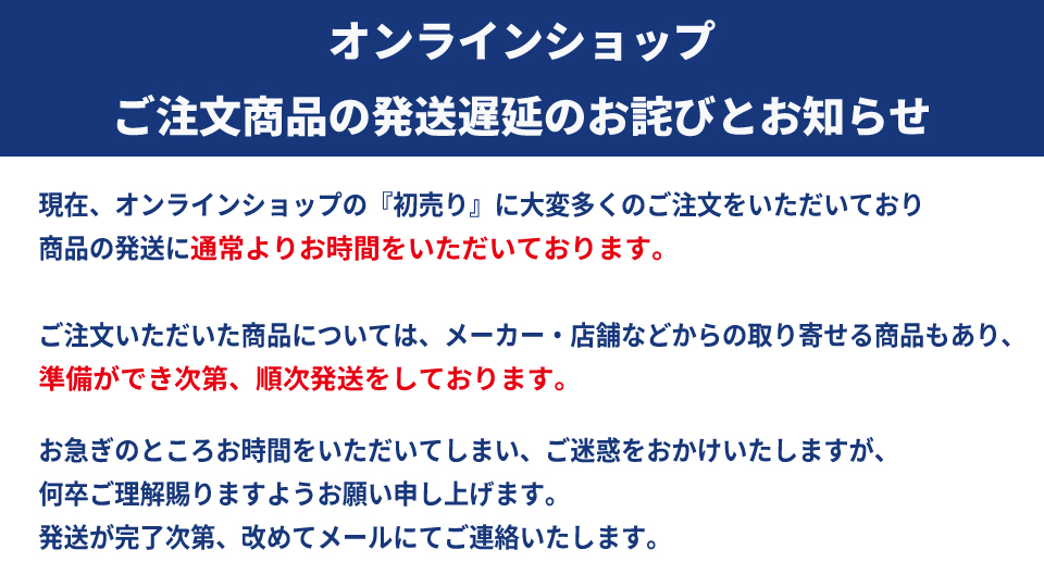 オンラインショップ ご注文商品の発送遅延のお詫びとお知らせ
