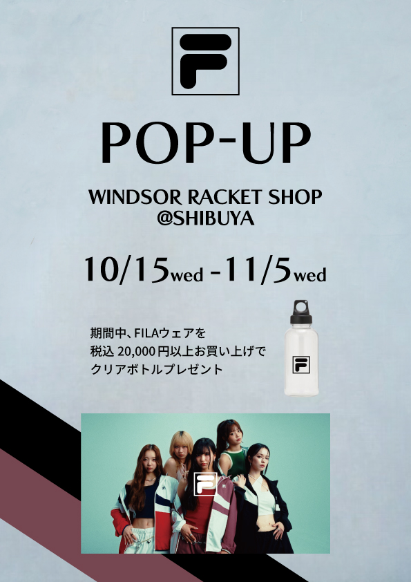 内容 | 上記期間中、通常取り扱いのない「カジュアルライン」のウエアを中心に期間限定にてPOPUP STOREを開催いたします。 また、フィラ商品を税込20,000円以上お買い上げでクリアボトルをプレゼント! |