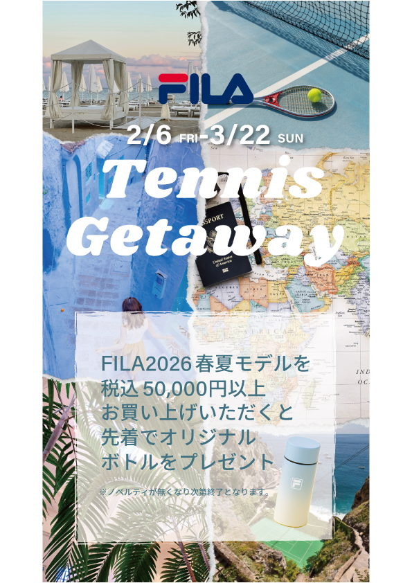 税込50,000円以上ご購入いただいたお客様に先着でFILAオリジナルボトルをプレゼント!